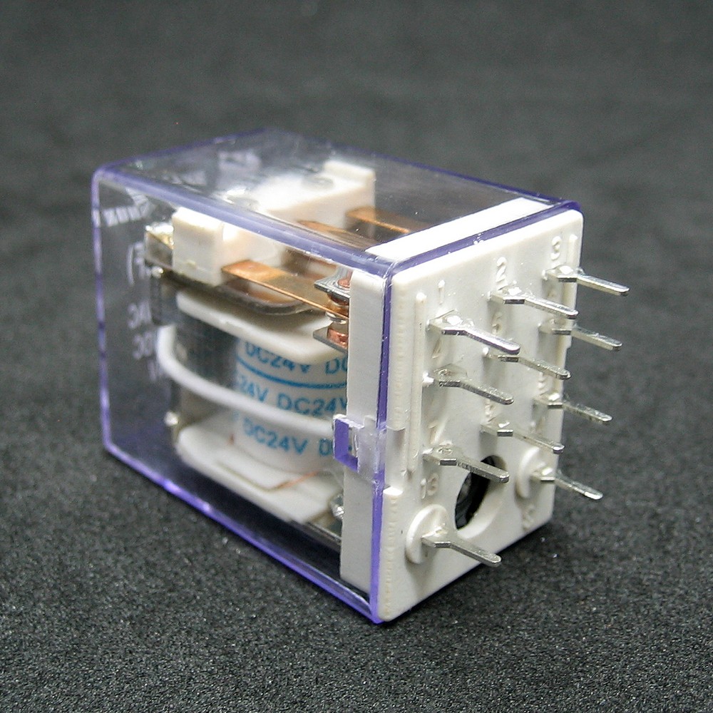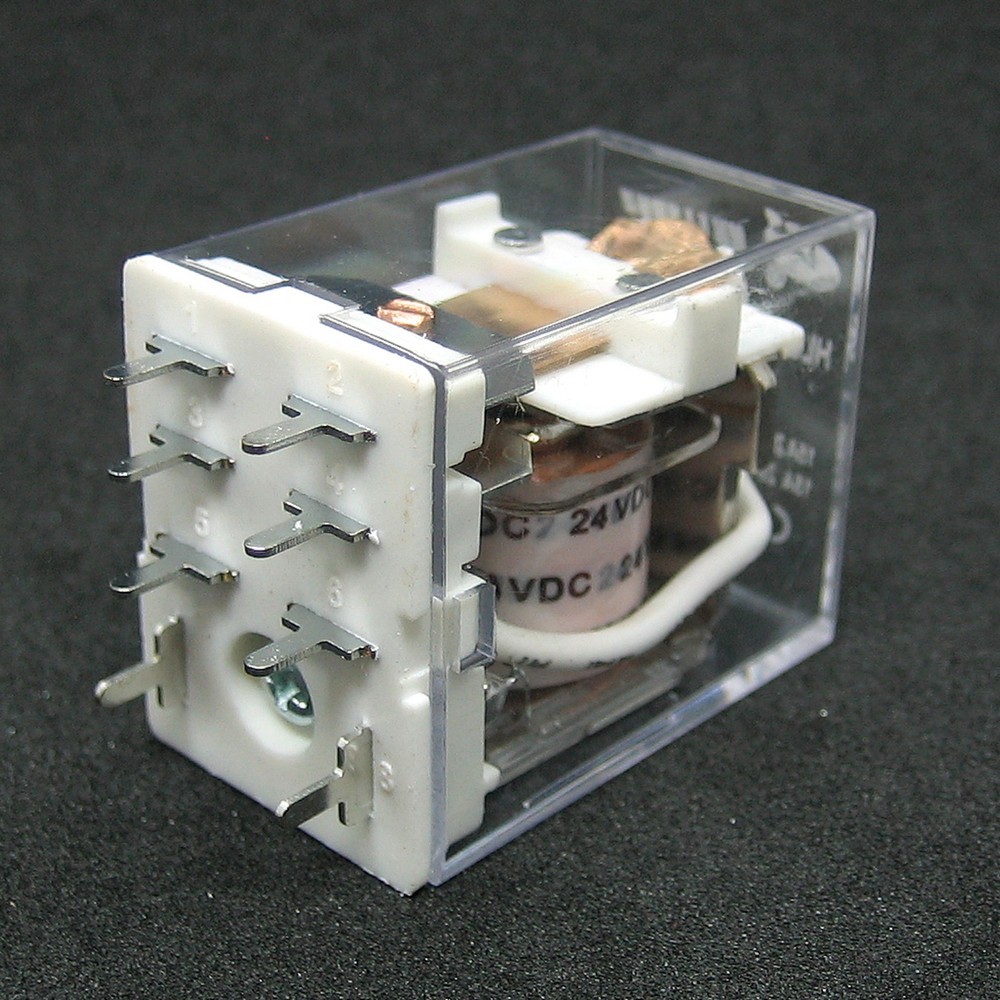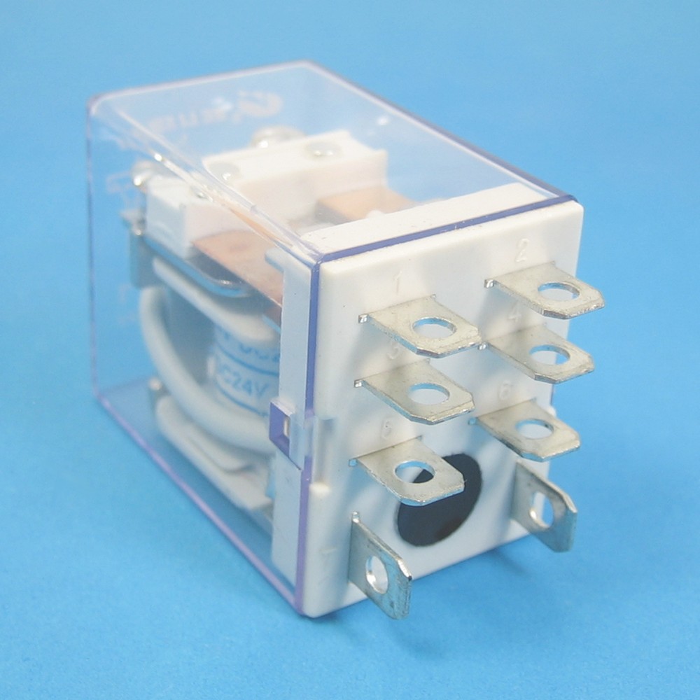 напряжение 24 В. - Тип контактов 2 C - параметры контактов 10 A 250 АС / 28 DC, Размер:34.7x34.7x52мм
