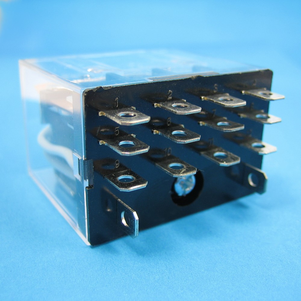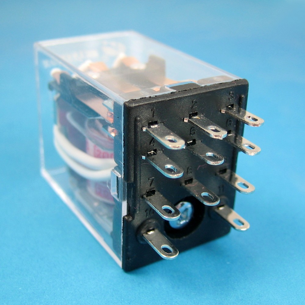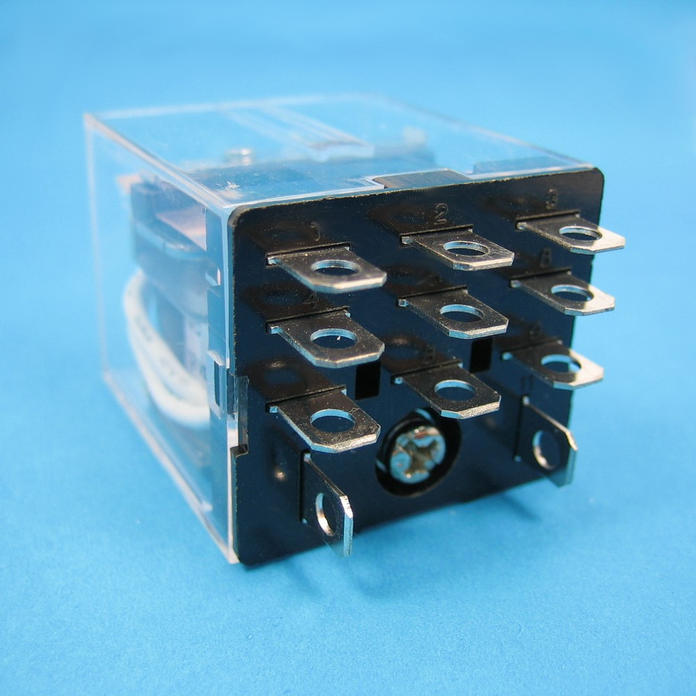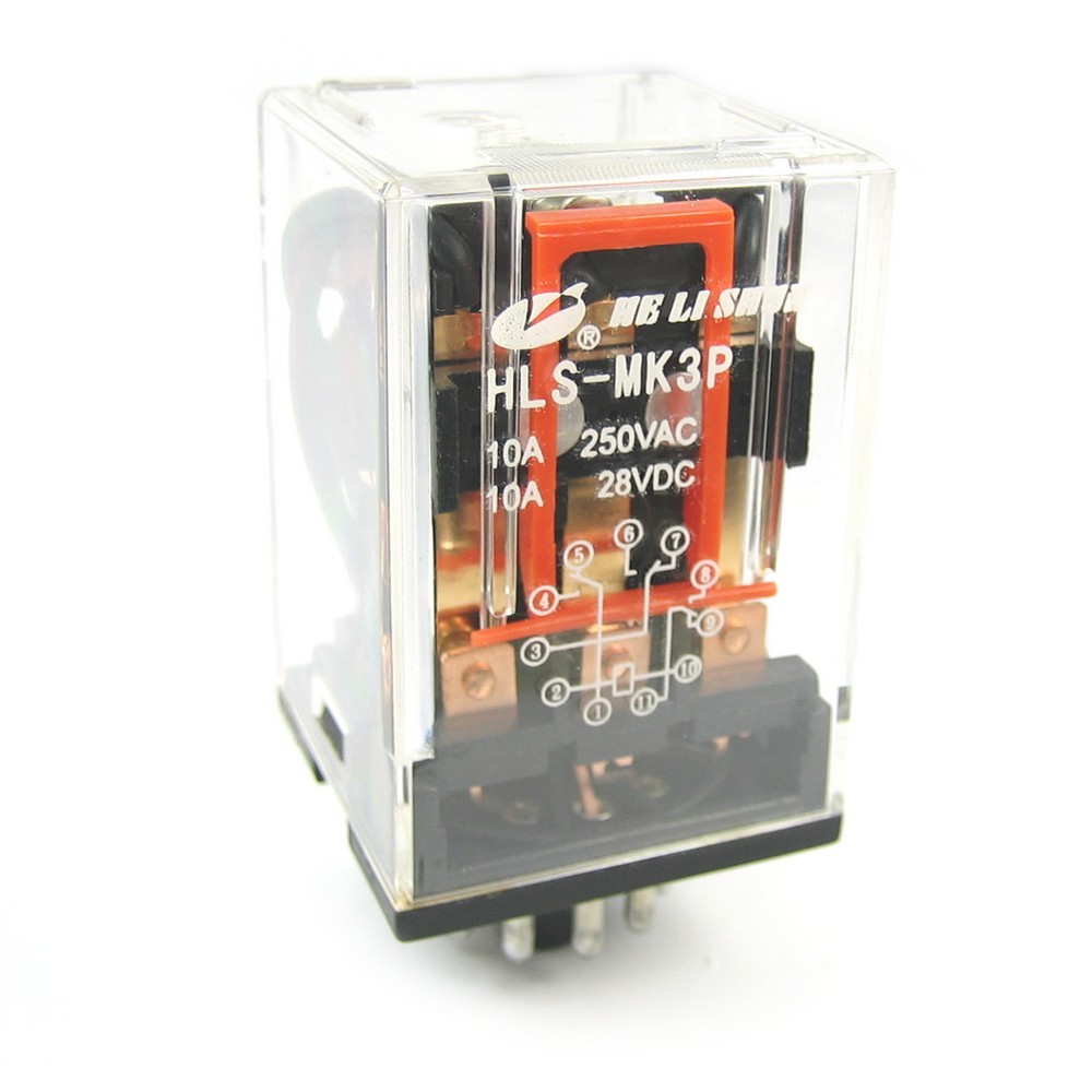 напряжение 220 VAC. - Тип контактов 3 C - параметры контактов 10 A 250 АС / 28 DC, Размер:34.7x34.7x52мм
