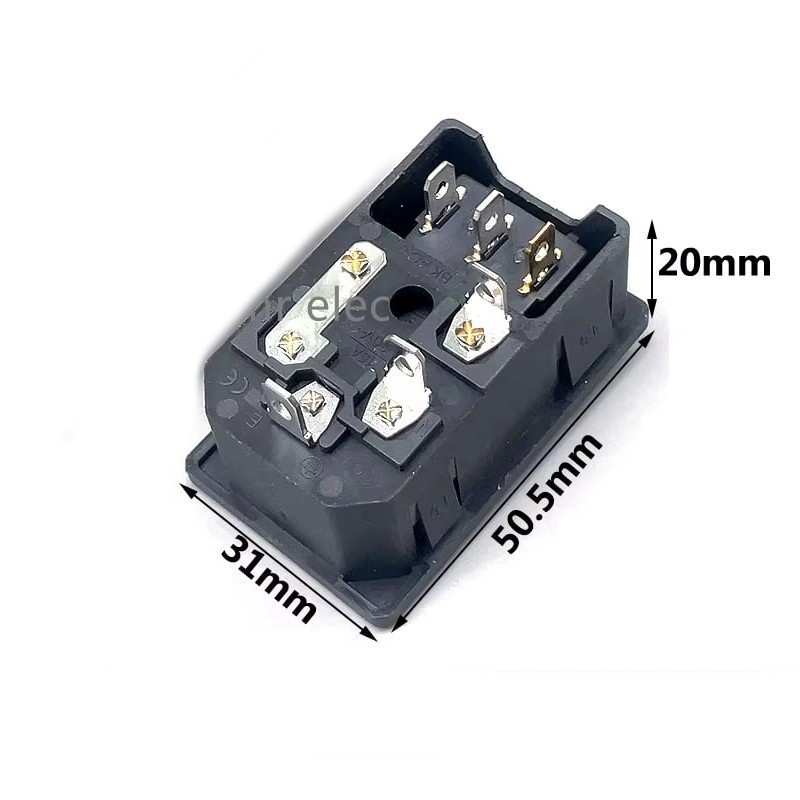Разъем питания 3 контакта, с выключателем и отсеком для предохранителя. Цвет выключателя: черный. 250 В. 10 А. Без подсветки. Защелки: 2 мм.