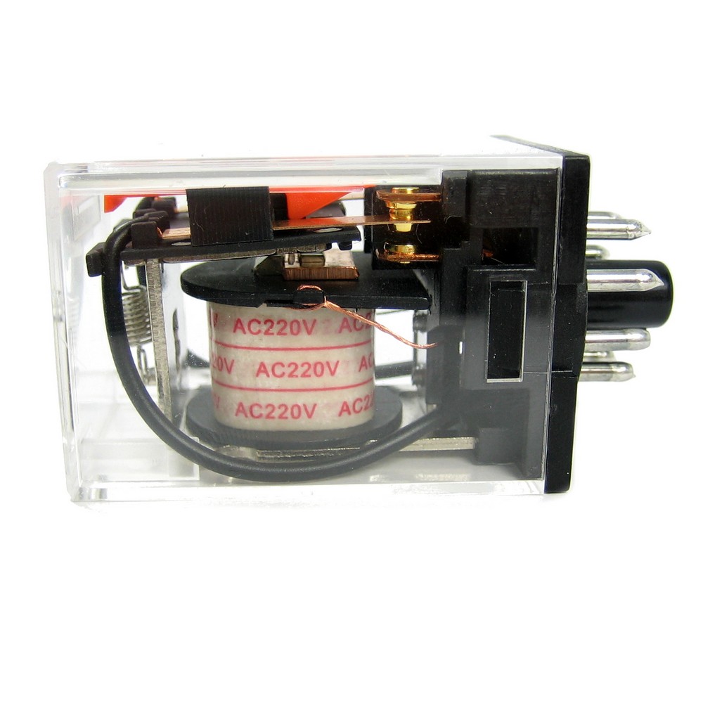 напряжение 220 VAC. - Тип контактов 2 C - параметры контактов 10 A 250 АС / 28 DC, Размер:34.7x34.7x52мм