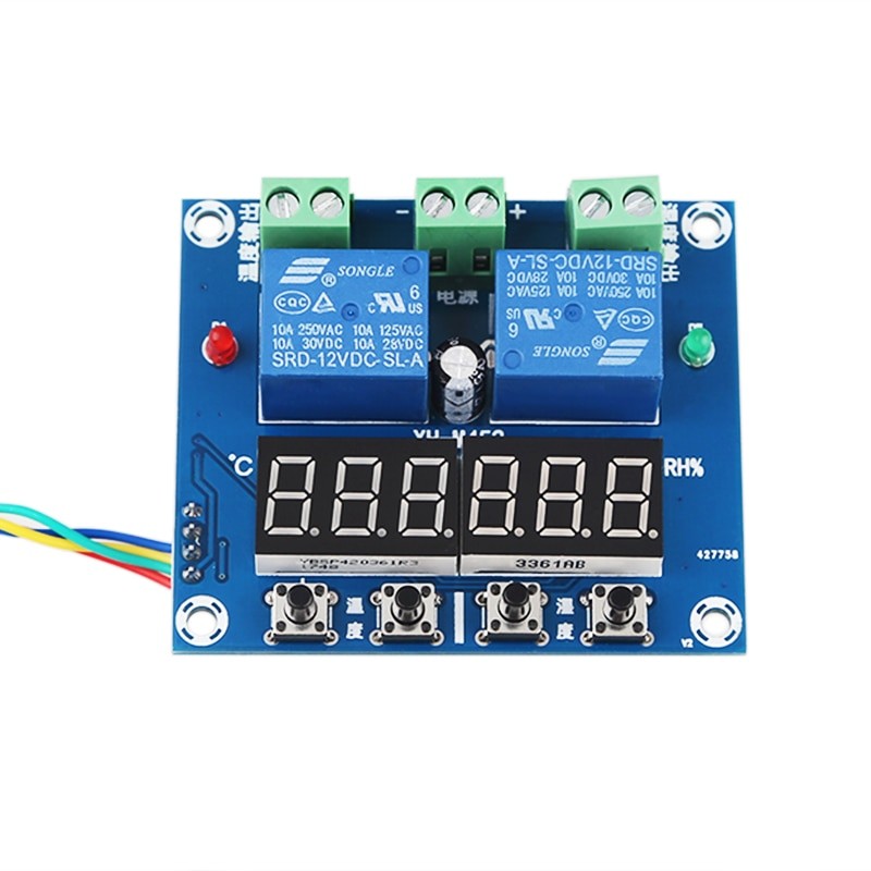 Электронный регулятор предназначен для контроля температуры и влажности в различных помещениях. Плата включает в себя два реле для управления приборами, такими как вентиляторы, кондиционеры, обогреватели или увлажнители воздуха, а также датчик температуры и влажности, который подключен к плате с помощью 1-метрового кабеля.