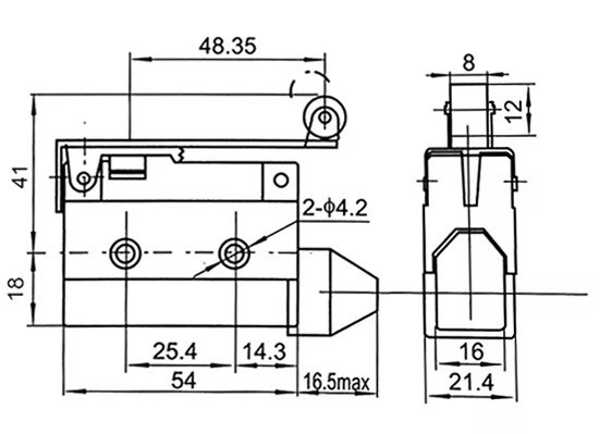 Перемикачі кінцеві, 10A/250VAC, з важелем (з роликом), SPDT