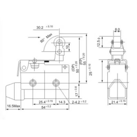 Перемикачі кінцеві, 10A/250VAC, з важелем (з роликом), SPDT