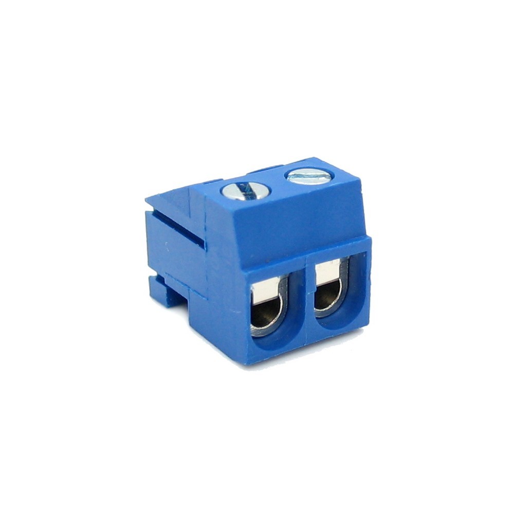 Гвинтовий клемник, із захистом дроти, крок 5 мм, контактів 2, Фосфористая бронза, 300В.10А. синій