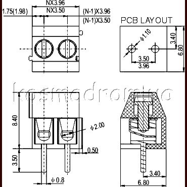 Гвинтовий клемник, із захистом дроти, крок 3,5 мм, контактів 3, латунь луджена, 300В.7А.зелений