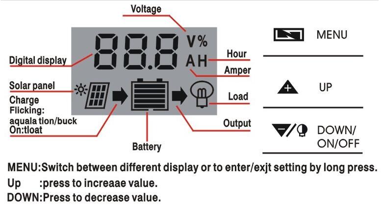 Сонячний контролер, підходить для зарядки свинцево-кислотних акумуляторів 12 в 24 В, літій-іонних акумуляторів (3S, 11,1 В), Літій-фосфато-залізних акумуляторів (4S, 12,8 В).