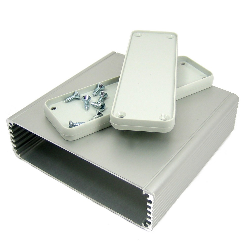 Корпус алюмюмініевий, анодований, з пластиковими кришками, розміри (ДхШхВ): 100х103х30,5 мм. Колір кришок: сірий