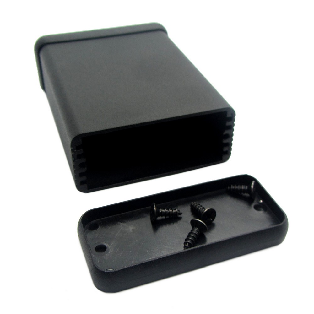 Корпус алюмінієвий, чорнений, анодований, з пластиковими кришками, розміри (ДхШхВ): 70х54х23мм. Колір кришок: чорний.