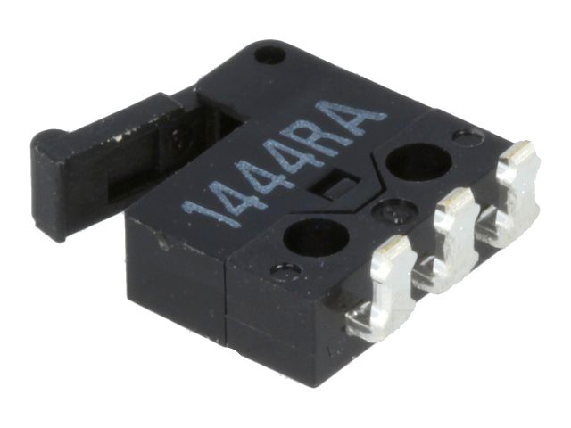 Мікроперемикач, з важелем, SPDT, 0,5A / 30VDC, ON- (ON), Кількість фікс. положень: 1, IP40, Виводи: на друковану плату, кутові, праві