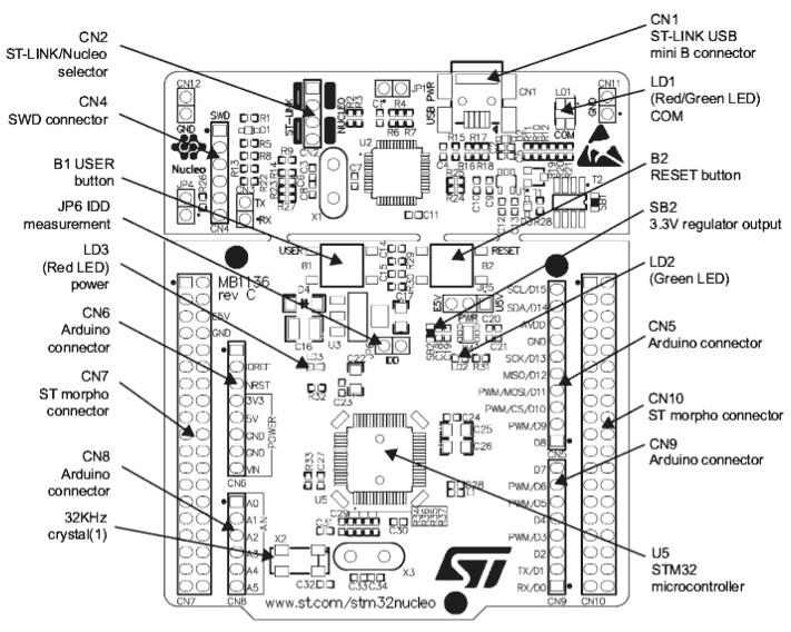 Отладочная плата з лінійки STM32 Nucleo-32, на основі мікроконтролера STM32L010RBT6