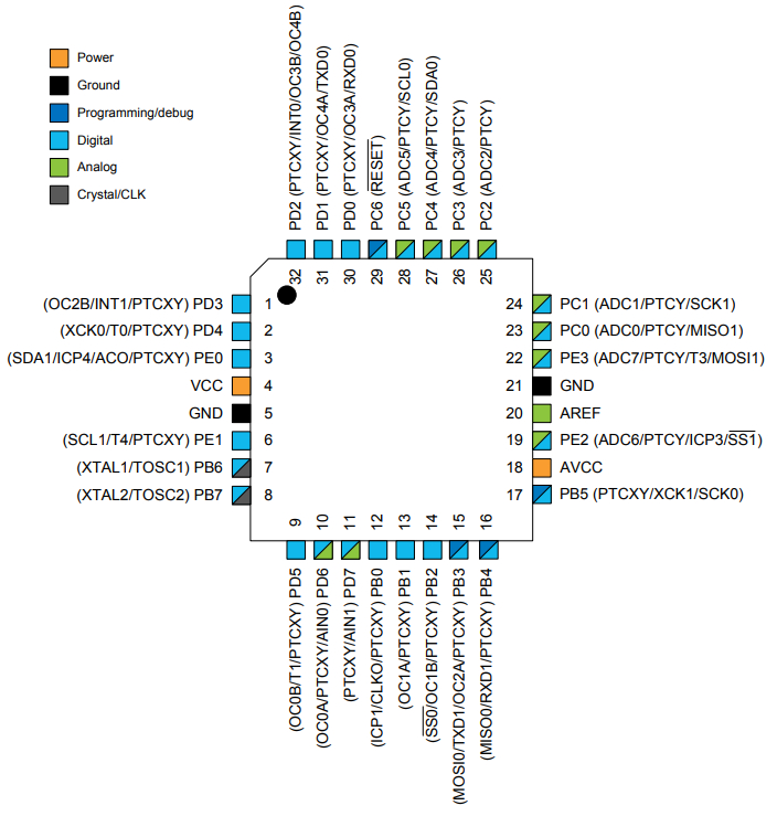 Розпинування ATmega328PB-AU: