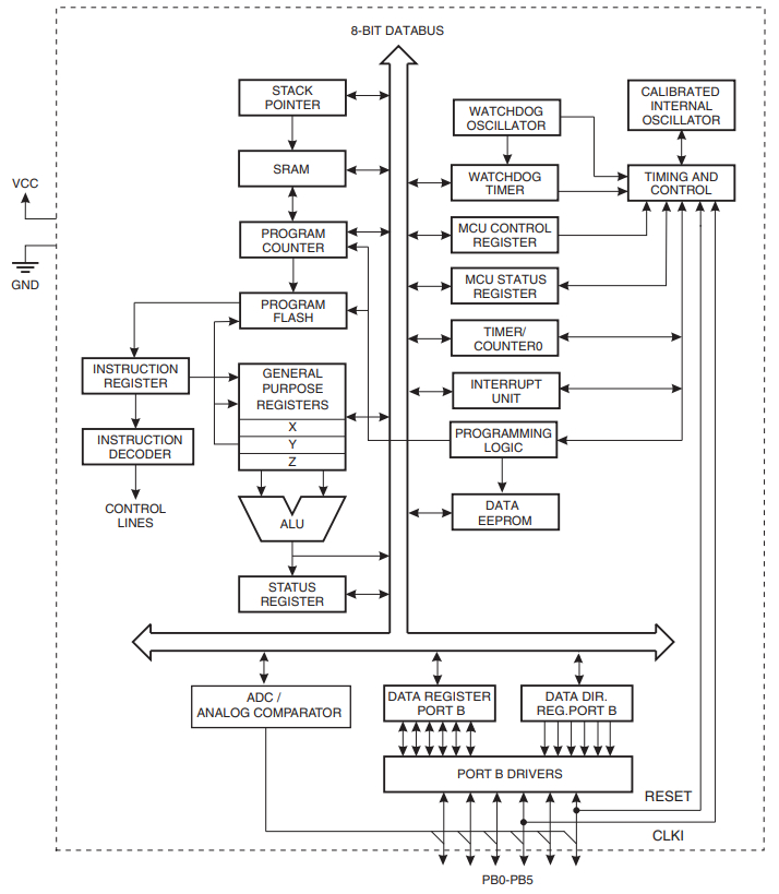 Блок-схема ATTINY13: