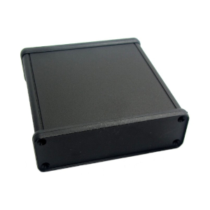 Корпус алюмюмініевий, чорнений, анодований, з пластиковими кришками, розміри (ДхШхВ): 100х103х30,5 мм. Колір кришок: чорний