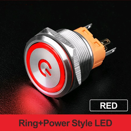 Плоска, нормально відкрита, D = 25 мм, з фіксацією, символ ON / OFF + кругова LED, RED (червона), 9-24V, нержавіюча сталь
