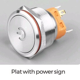 Плоска, нормально відкрита, D = 25 мм, з фіксацією, символ ON / OFF, RED (червона), 9-24V, нержавіюча сталь