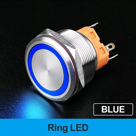 Плоска, нормально відкрита, D = 25 мм, з фіксацією, кругова LED, BLUE (синя), 9-24V, нержавіюча сталь