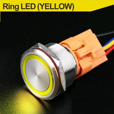 Плоска, нормально відкрита, D = 25 мм, з фіксацією, кругова LED, YELLOW (жовта), 9-24V, нержавіюча сталь