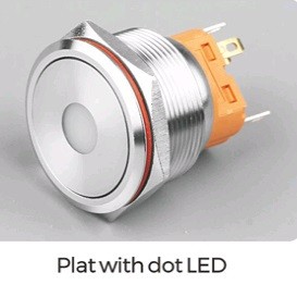 Плоска, нормально відкрита, D = 25 мм, з фіксацією, точкова LED, RED (червона), 9-24V, нержавіюча сталь