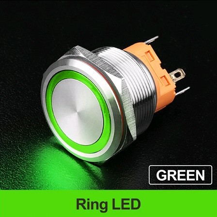 Плоска, нормально відкрита, D = 25 мм, з фіксацією, кругова LED, GREEN (зелена), 9-24V, нержавіюча сталь