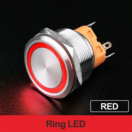 Плоска, нормально відкрита, D = 25 мм, з фіксацією, кругова LED, RED (червона), 9-24V, нержавіюча сталь