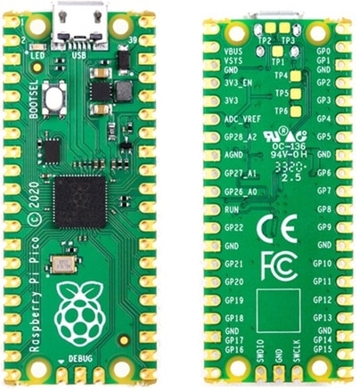 Raspberry Pi Pico оснащений мікроконтролером RP2040 з двоядерним процесором Arm Cortex-M0+ з 264 КБ внутрішньої пам'яті та підтримкою до 16 МБ зовнішньої флеш-пам'яті. Він має широкий спектр гнучких варіантів введення-виведення, включаючи I2C, SPI та унікальні програмовані порти введення-виведення.