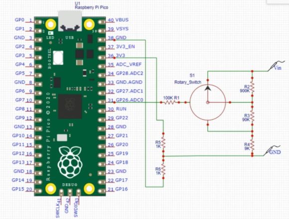 Ось схема дільника напруги, яка розбиває сигнал на три вибірки: x100, x10, x1. Ви можете використовувати поворотний перемикач і вибрати діапазон відповідно до вашої вимоги.