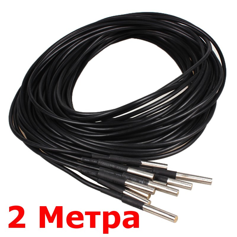 Датчик (зонд) на базі DS18B20, Герметичний, Довжина кабелю 2 метри(+/-10см). Довжина гільзи - 50 мм, діаметр - 6 мм.