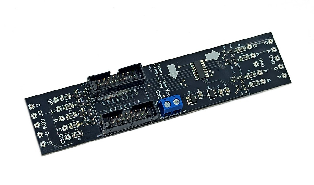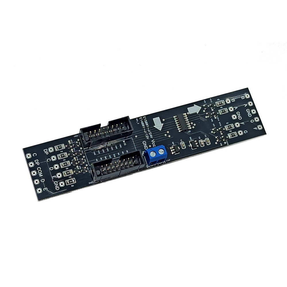 Для комплектації табло необхідно послідовно з'єднати потрібну кількість плат із встановленими на них індикаторами. Дані передаються за 8-бітним послідовним інтерфейсом. Напрямок даних - LSB-first. Сегменти точки та коми об'єднані. Для виведення лише точки необхідно видалити резистор R3.