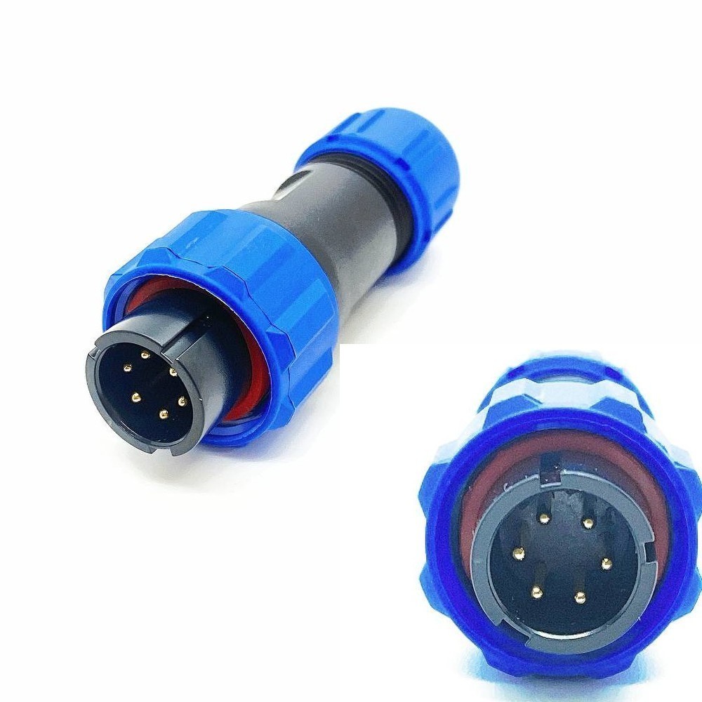 SP13, вилка, (папа), PIN:6, IP68, диаметр кабеля: 4~6.5мм, 250В, 13A, пайка, на провод