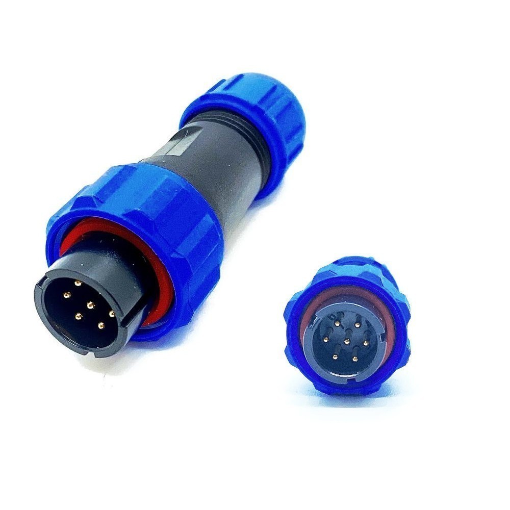 SP13, вилка, (папа), PIN:7, IP68, диаметр кабеля: 4~6.5мм, 250В, 13A, пайка, на провод