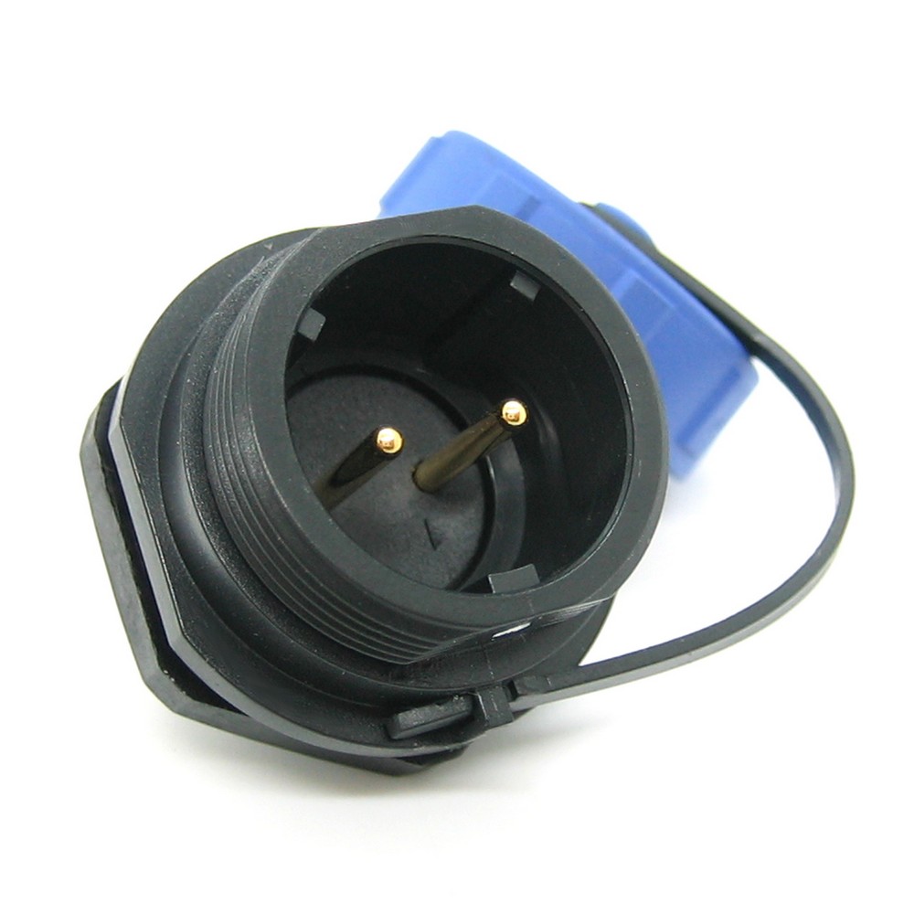 SP21, вилка, PIN: 2, IP68, пайка на панель, 500В, із захисною кришкою