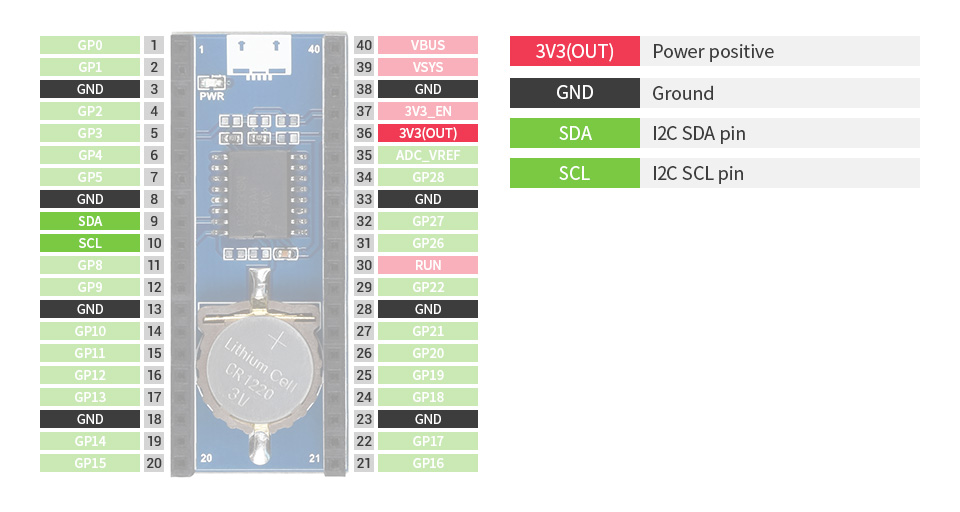 Pico-RTC-DS3231 - це модуль спеціалізований для Raspberry Pi Pico. Він включає високоточний чіп RTC DS3231 та використовує шину I2C для зв'язку. Завдяки штабельованої конструкції можна підключати багато зовнішніх датчиків.