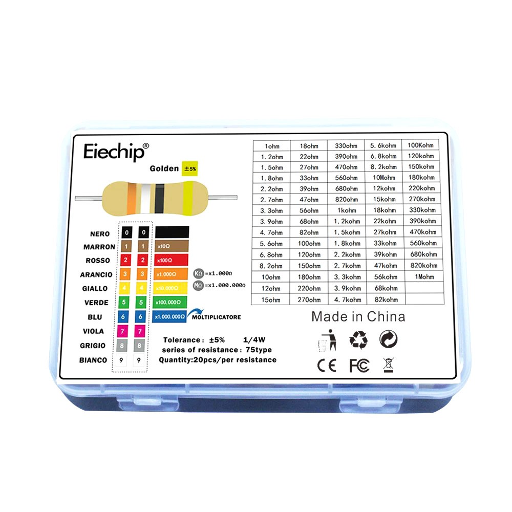 Набір складається із 30 номіналів вивідних резисторів 1/4 Вт. 1% 20 шт. У пластиковому боксі
