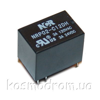 реле електромеханічне силове серії NRP02, контакти 1C (SPDT), Uпит: 12VDC, навантаження 3A / 220VAC, 3A / 30VDC, Розмір: 15.5x10.5x11.5мм