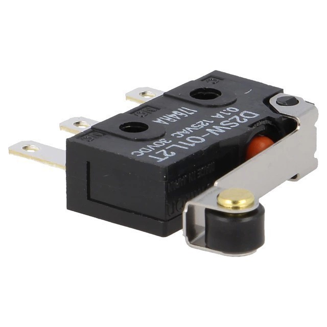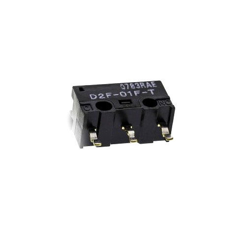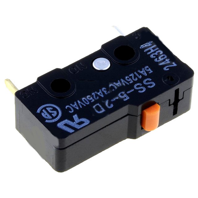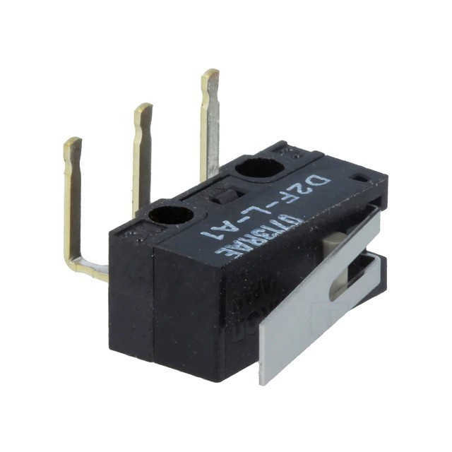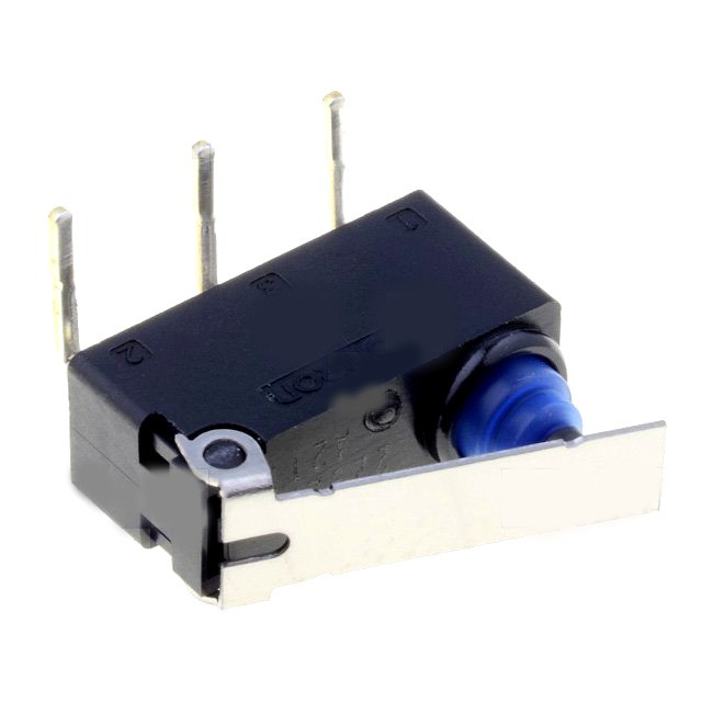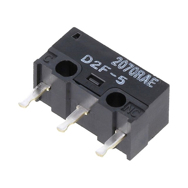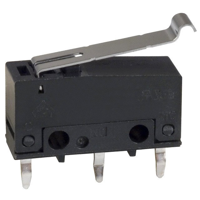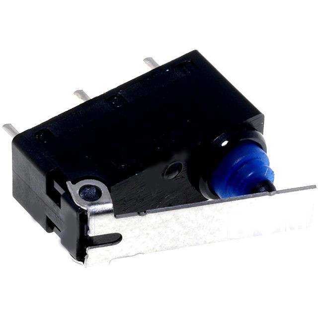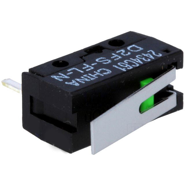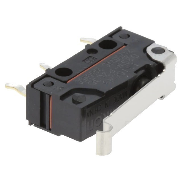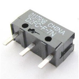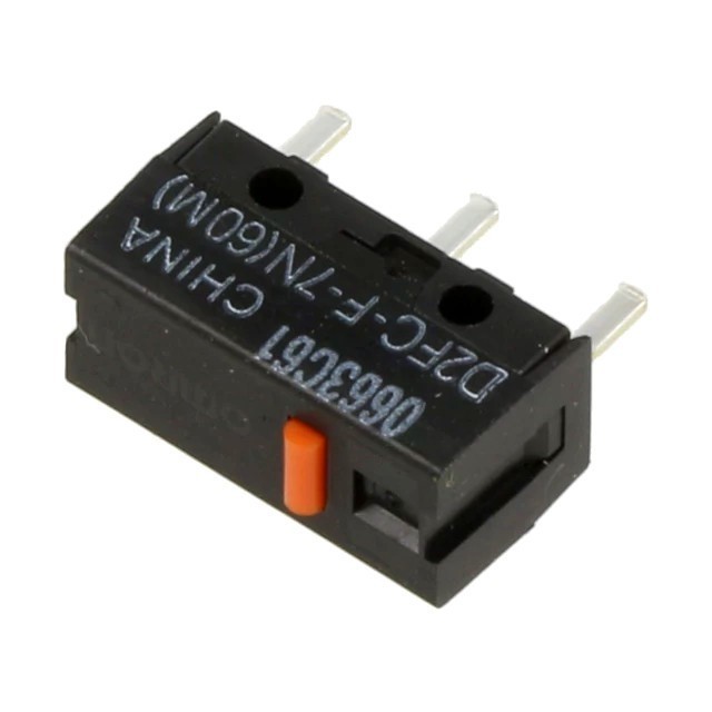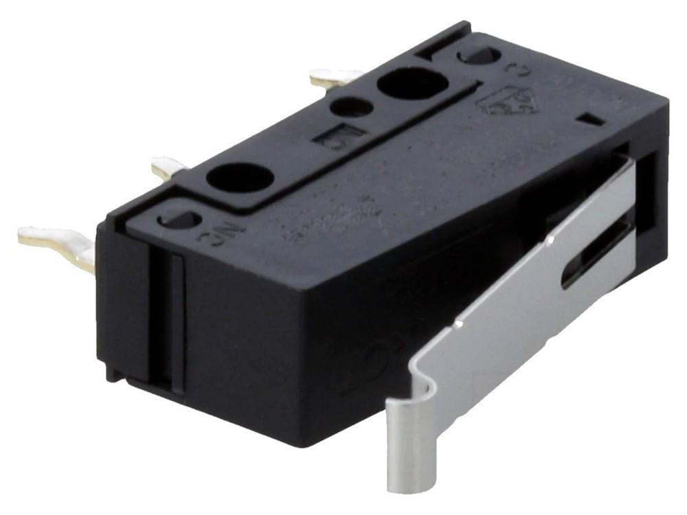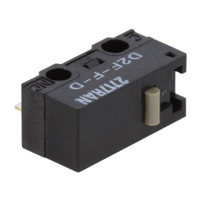 Мікровимикач Omron D2FC-F-7N з ресурсом п'ять мільйонів натискань. Має три контакти – загальний, нормально замкнутий та нормально розімкнений.