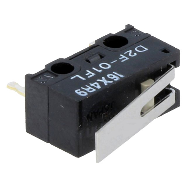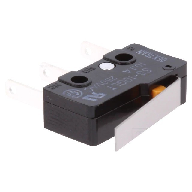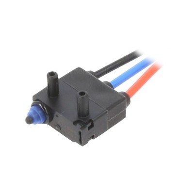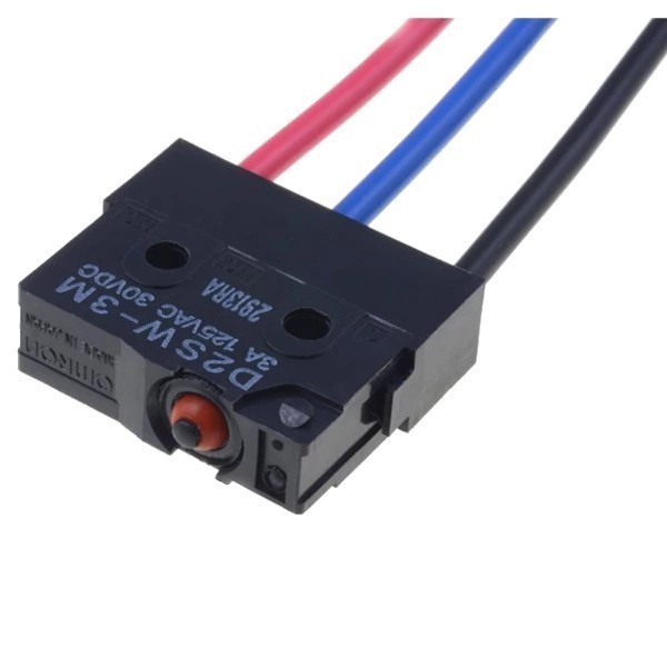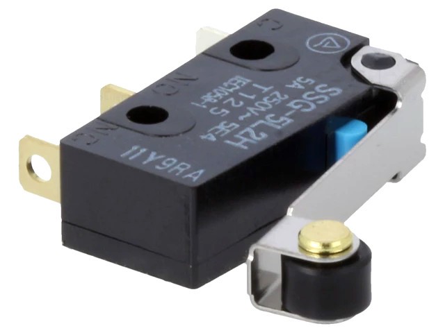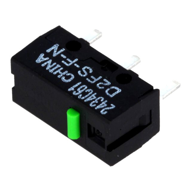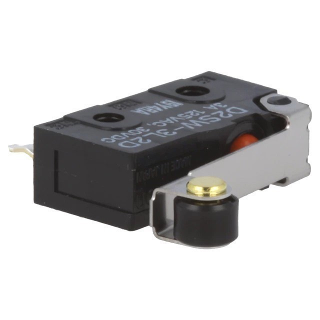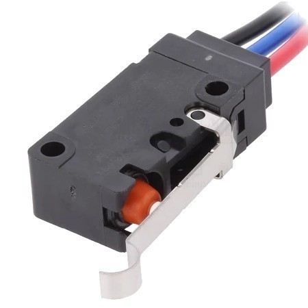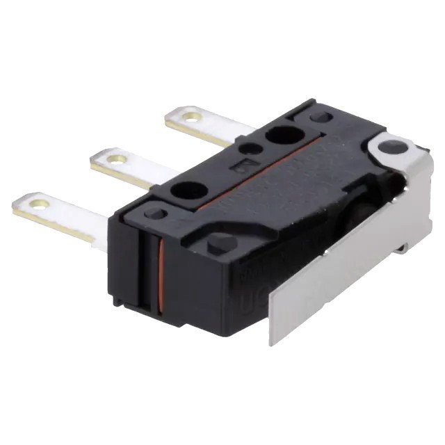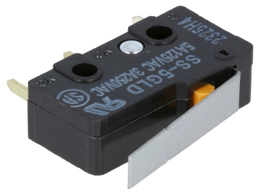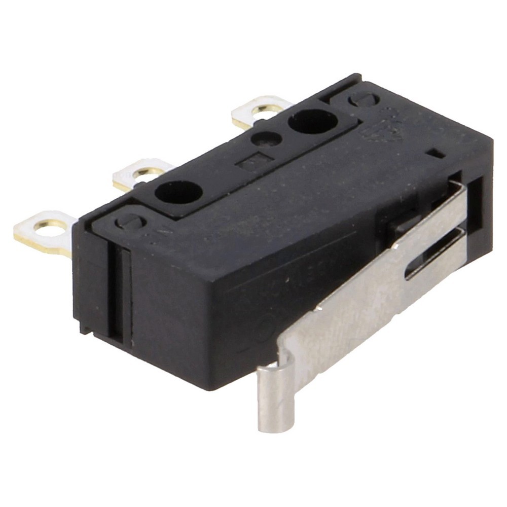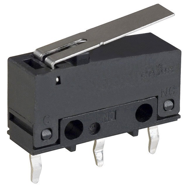 Мікровимикач Omron D2FC-F-7N з ресурсом п'ять мільйонів натискань. Має три контакти – загальний, нормально замкнутий та нормально розімкнений.