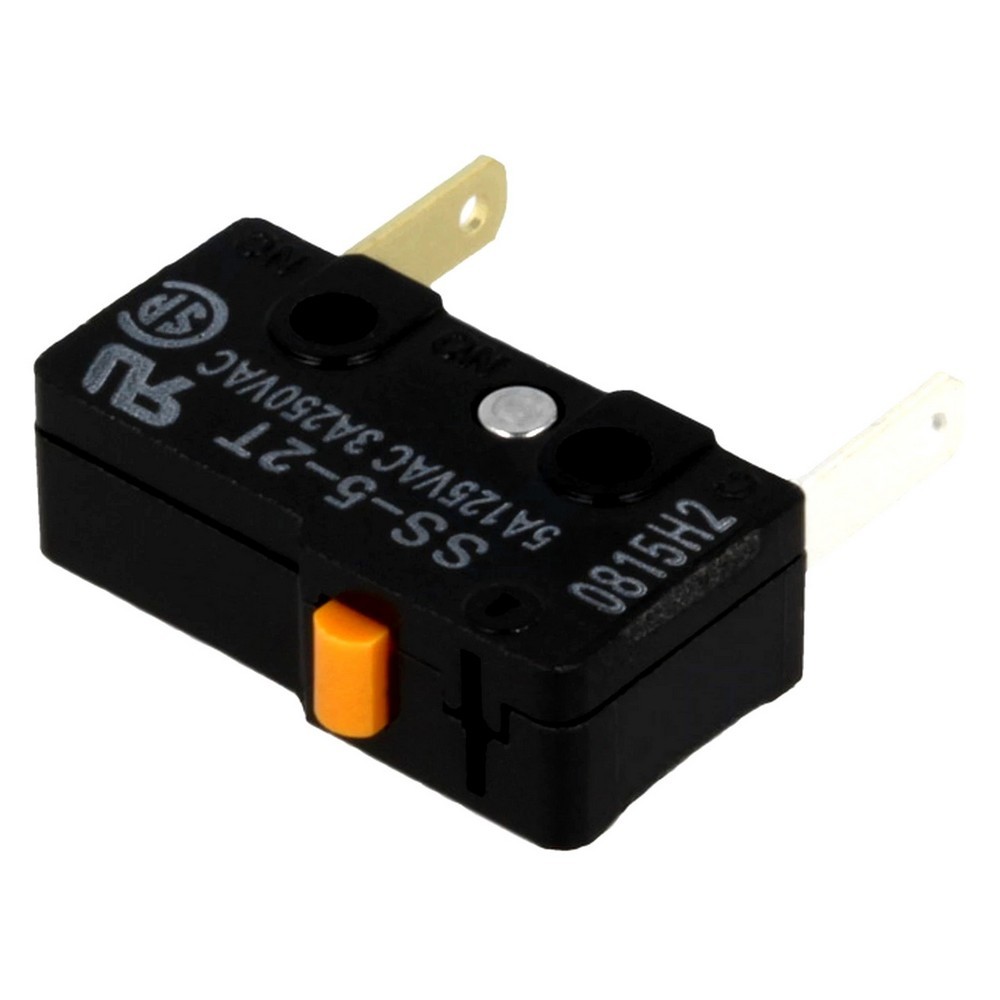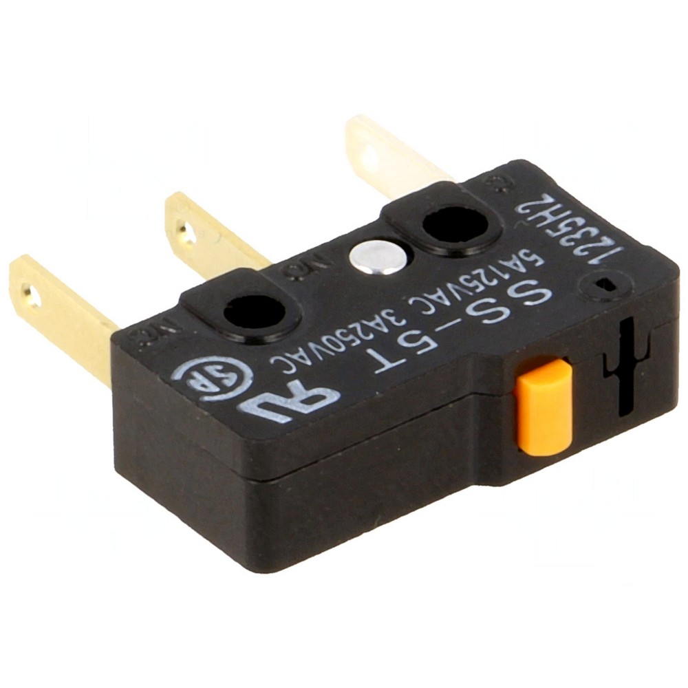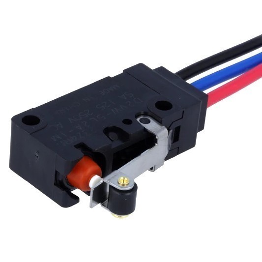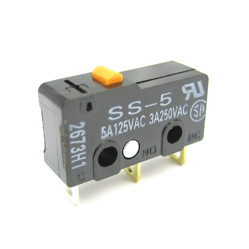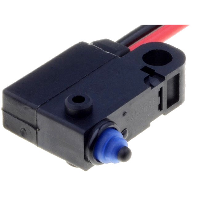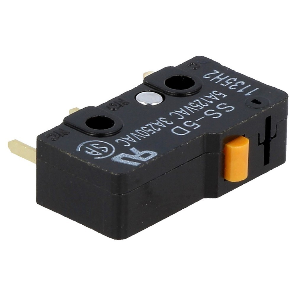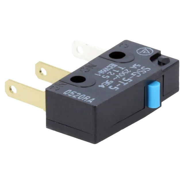 Мікровимикач Omron D2FC-F-7N з ресурсом п'ять мільйонів натискань. Має три контакти – загальний, нормально замкнутий та нормально розімкнений.