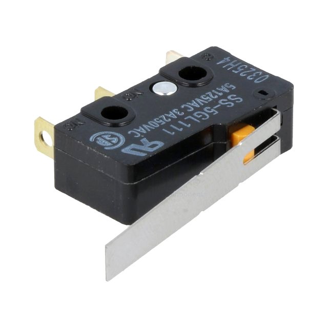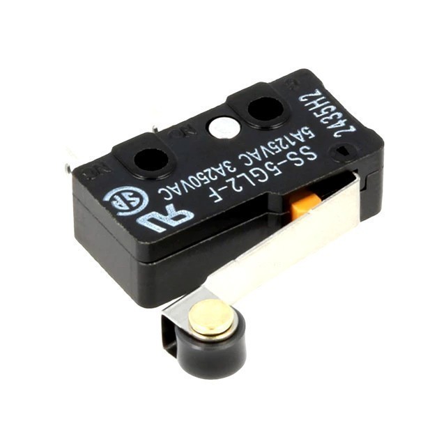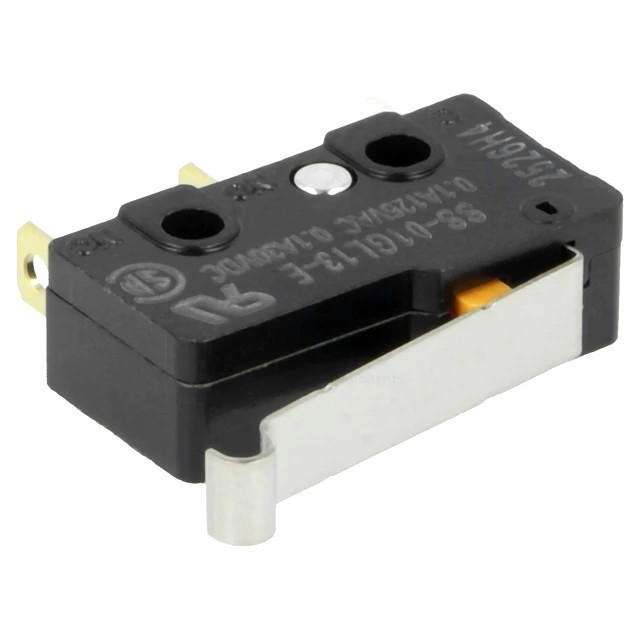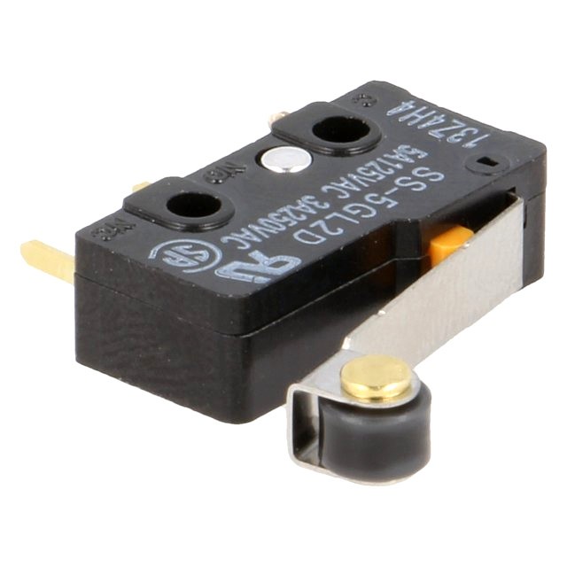 Мікроперемикач: з важелем з імітацією ролика: SPDT: ON- (ON). Виводи: на друковану плату, кутові, ліві