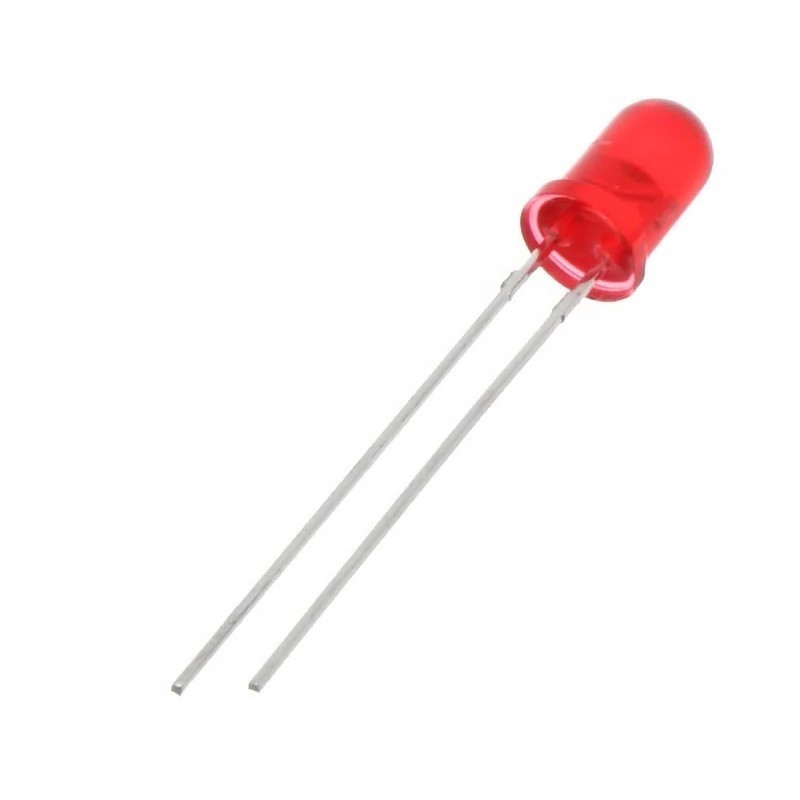 LED: 5 мм: червоний: дифузний, 100-130мкд: 60 °: Поверхня: опукла