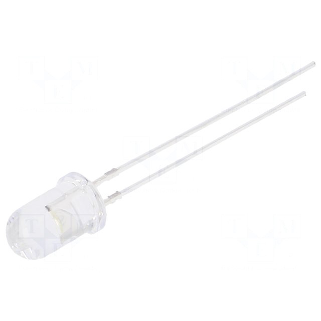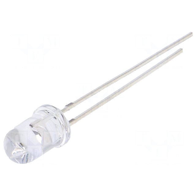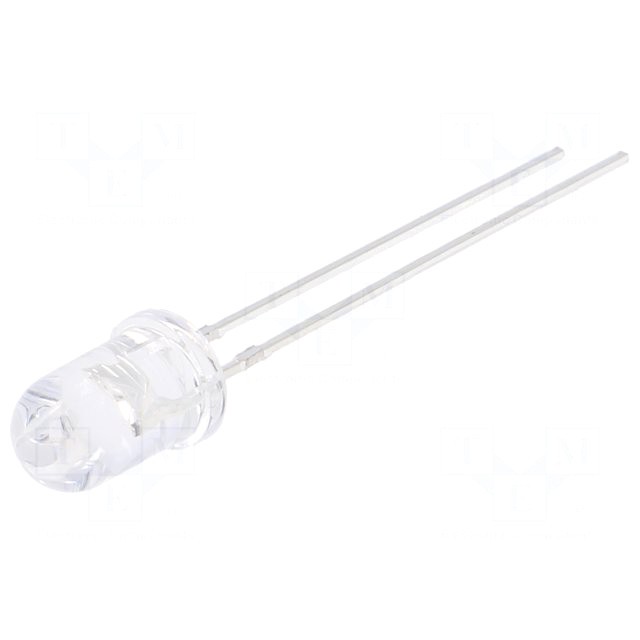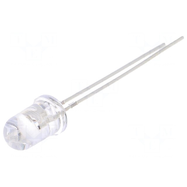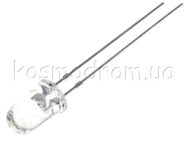 Світлодіод 8 мм: білий холодний: прозорий, 140 °: Поверхня: опукла: Крок: 5,16мм: 50 lm @ 40mA, 8000-17000K: довгі виводи