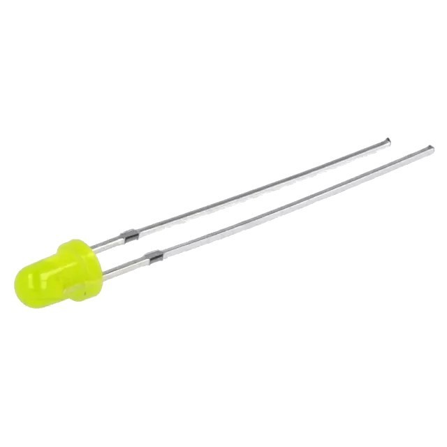 Жовтий, миготливий світлодіод з яскравістю 4500-5800 мкд і кутом розсіювання 30 °, що імітує полум'я свічки. На контактах можливі сліди від виробництва