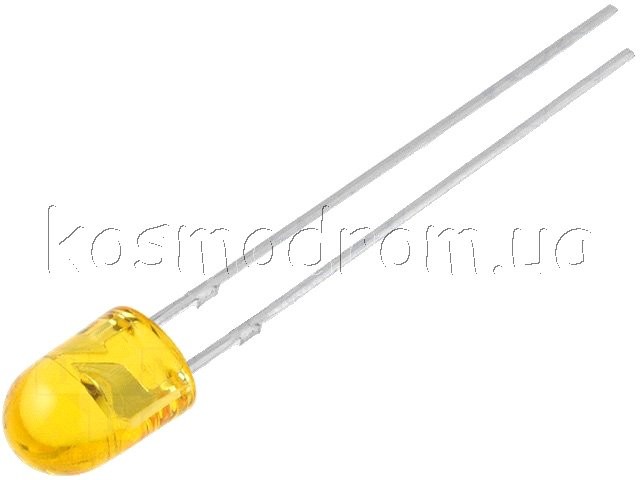 Світлодіод 10 мм, колір: жовтий, кут: 30, яскравість: 12000 мкд, довжина хвилі: 590 нм, прозорий.