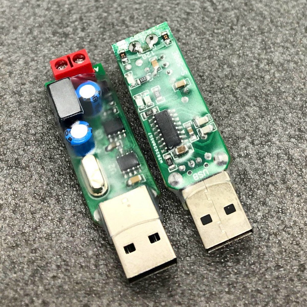 В адаптері застосована ІС інтерфейсу RS-485 оснащена драйверами зі зниженою швидкістю наростання вихідної напруги, що знижує радіоперешкоди та забезпечує передачу та прийом без помилок до максимальної швидкості 500 кбіт/с. Інтерфейс USB виконано на основі фірмового апаратного моста FTDI. В якості гальванічної розв'язки використовується IC на основі чіп-трансформатора. Живлення інтерфейсу RS-485 здійснюється від USB через DC/DC перетворювач (12 В). Цю ж напругу (з виходу –U+) можна використовувати для живлення інтерфейсної частини пристроїв, що підключаються (зі струмом споживання до 80 мА). Індикація напруги живлення здійснюється світлодіодом “Urs”, передачі та прийому – світлодіодами “TxD” та “RxD” відповідно.