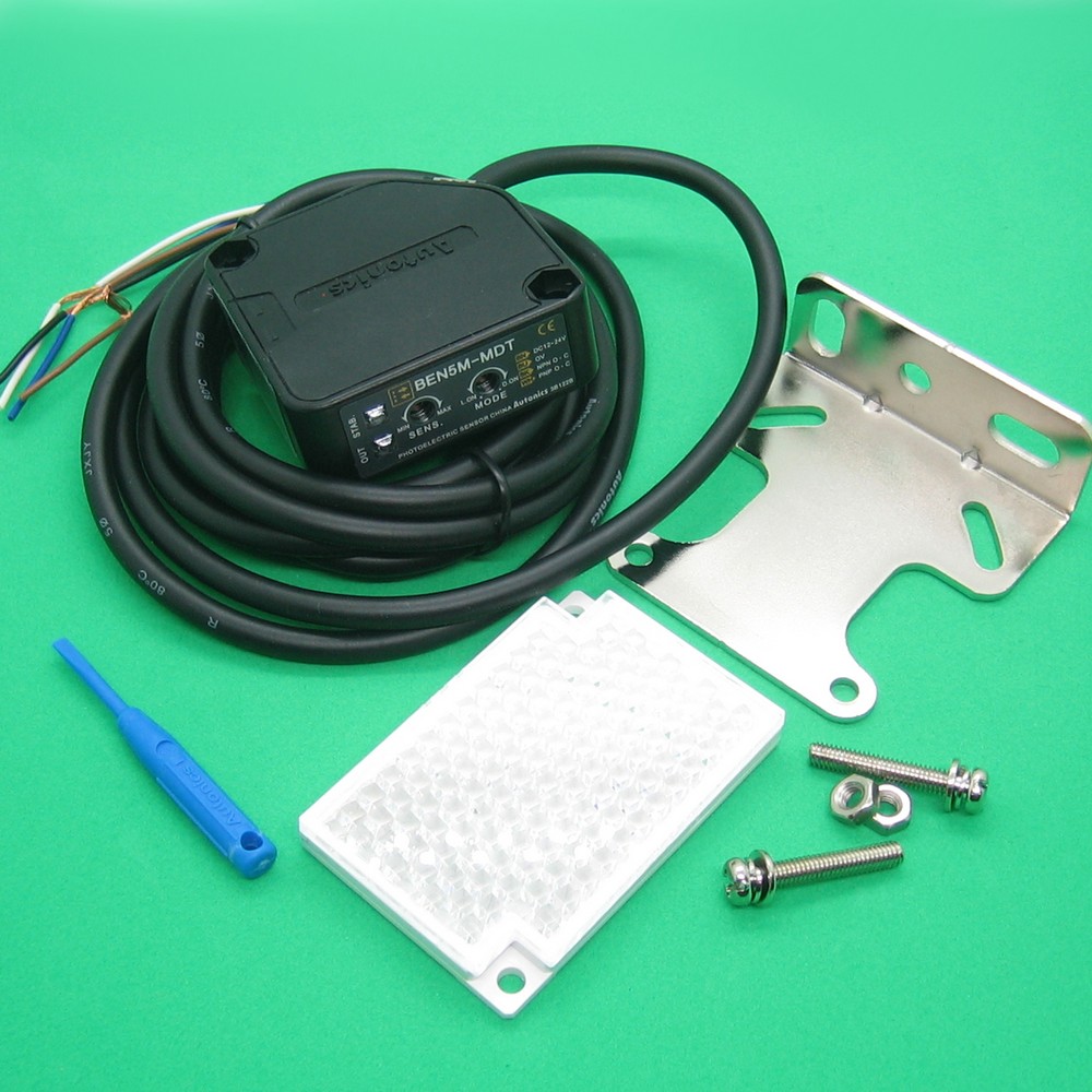 фотодатчик, вихід PNP / NPN перехід, NO + NC, на перетин променя з відбивачем до 5 метрів, 12-24 Вольта DC