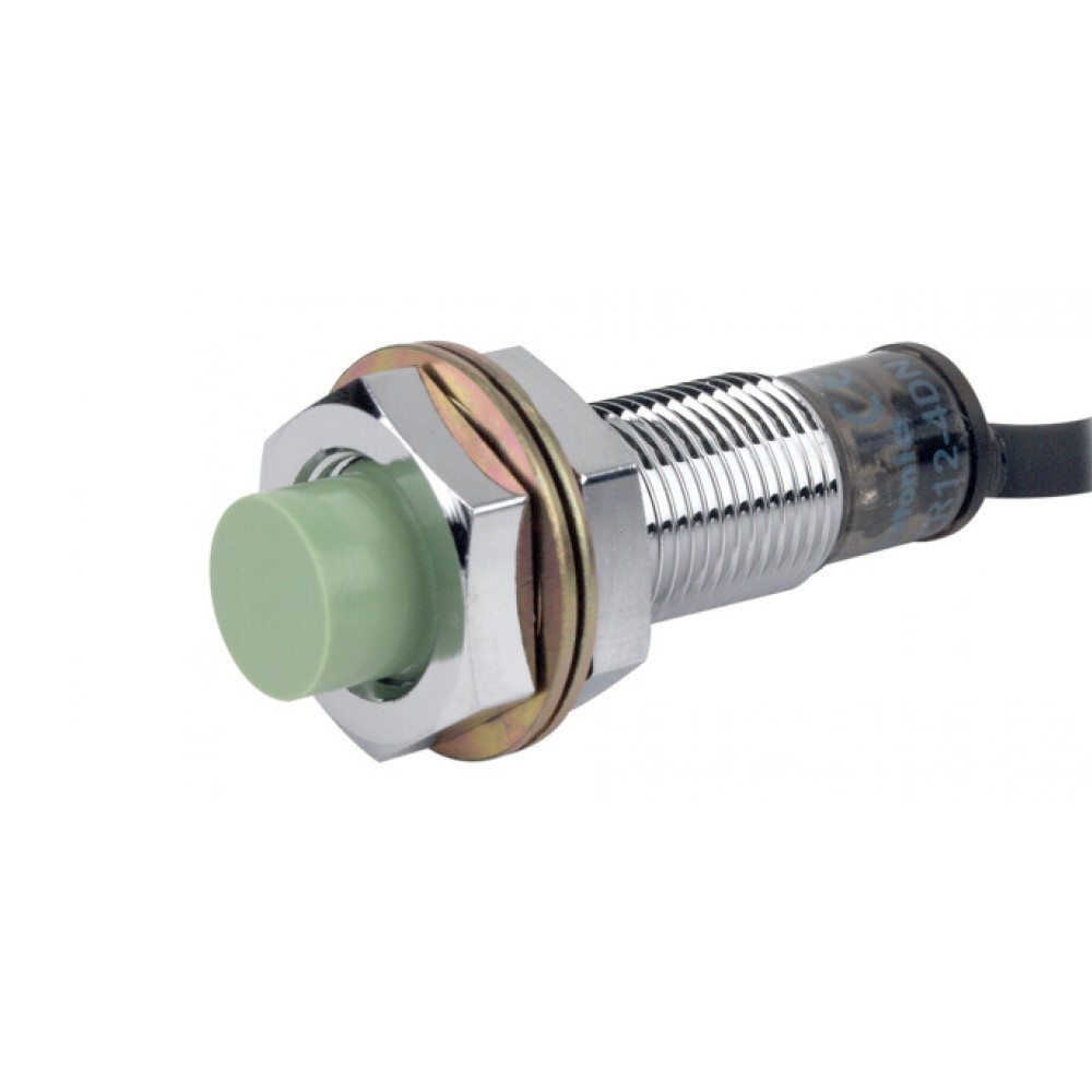 корпус: циліндричний, M12, 2-х провідний, тип виходу: NO, живлення: 10-30 V DC, який виступає, роз'єм: немає, відстань спрацьовування: 4 мм, індикатор: є, довжина кабелю: 2 м, матеріал: латунь