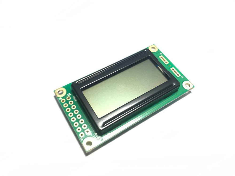 РКК знакосинтезуючий 8 x 2, STN Сірий Позитивний/відбиваючий світлодіодне підсвічування Жовто-зелений, розмір 58x32 мм, видима область 38x16 мм, живлення 5В, English/Cyrillic Font