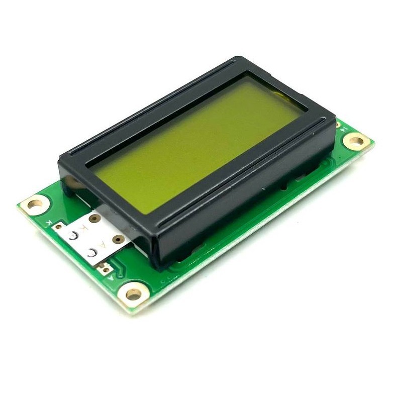 РКІ модуль: 8 символів 2 рядки: Розміри 58.0x32.0 мм: колір символів: сірий, фону: жовтий, Розмір символів 2,96х5,56 мм, English/Cyrillic Font