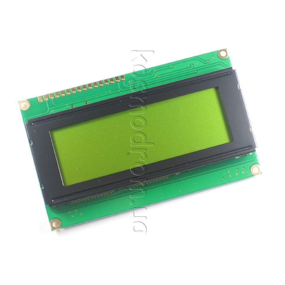 Символьний ЖК-дисплей 20х4: розмір 146х62.5 мм: видима область 123.5х43 мм: розмір символу 4.84х9.22 мм: контролер ST7066: робоча температура -20 ... + 70 ° С: STN позитивний жовто-зелений: підсвічування LED жовто -зелена: трансфлектівний: кут огляду 6:00: English/Cyrillic Font