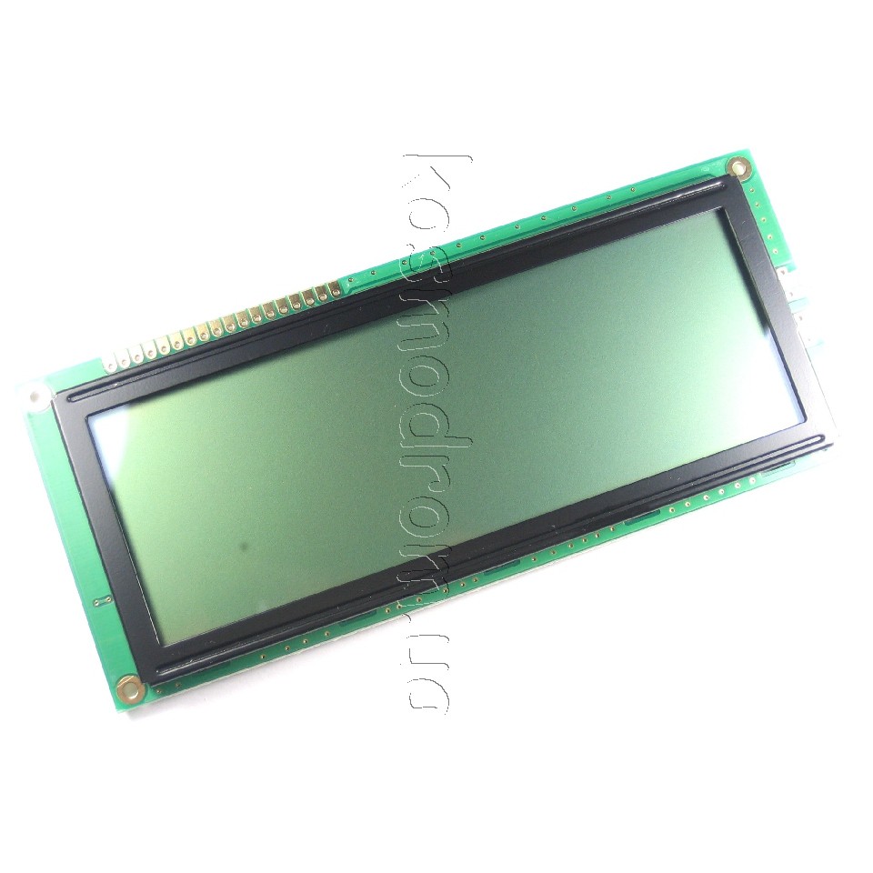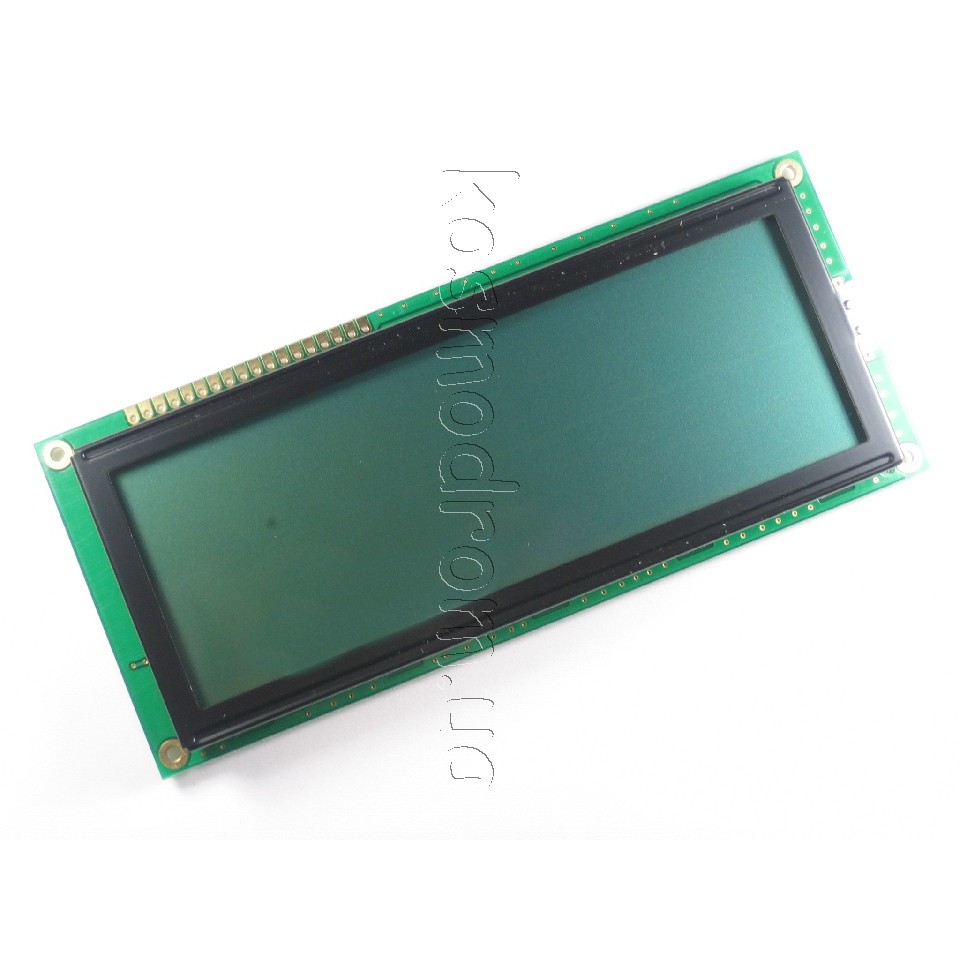 символьний - 20 символів x 4 рядків. розміри модуля, мм: 98.0 x 60.0. розмір видимої області, мм: 77.0 x 25.2 (діагональ: 3.2 = 8.1 см). Розмір символу: 2,95х4,75 мм, English/Cyrillic Font