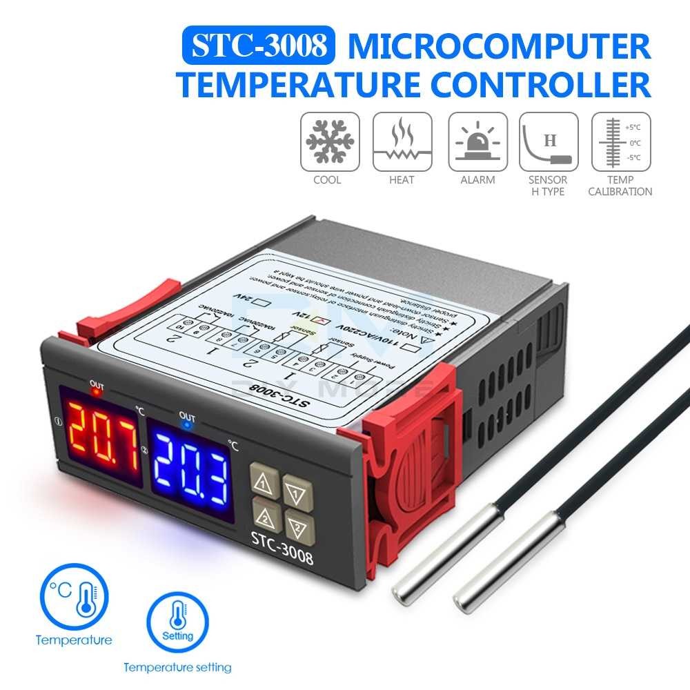 Терморегулятор (термостат ПІД) цифровий високоточний STC 3008 до 2,2 кВт - це пристрій цифрового типу з програмним керуванням і звуковою сигналізацією температури для контролю температури в різних сферах застосування. Призначений для підтримки температури середовища у заданих межах. Працює з охолоджувачем та нагрівачем. Є можливість підключення двох виносних датчиків. У STC-3008 використовується 2 реле, 2 датчики та 2 дисплеї для контролю нагріву та охолодження.
